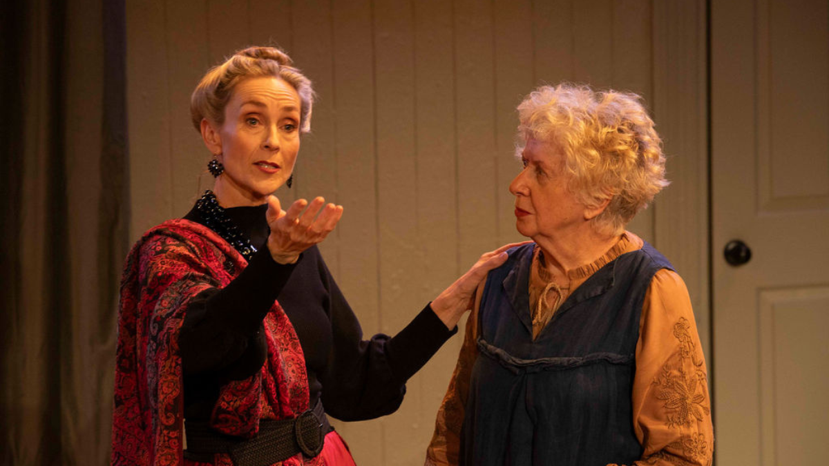 Alison van Reeken commands the room as Nora, a constant presence on stage for this 90-minute production, while the three other characters take turns rotating in debate-style conversations with her. First, it’s Nora versus Anne Marie, played by Julia Moody. There is an enveloping warmth and tenderness between them as they fill the gaps in time, allowing us to learn about Nora’s life since she left. While the play is rich in comedy throughout, this opening act certainly takes the cake, in large part thanks to Julia’s array of facial expressions, which left no one guessing what Anne Marie thought of Nora’s adventures. It’s been a while since I enjoyed such laugh-out-loud moments at the theatre.